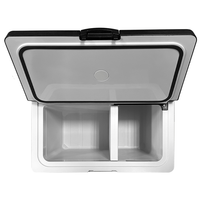 Встраиваемый автохолодильник для грузовика с 2-мя камерами компрессорного типа с питанием 12В/24/(220В опция). Диапазон регулируемых температур от 8 до -20 градусов. Размеры автохолодильника (В*Ш*Г): 25*50,2*43,5см.