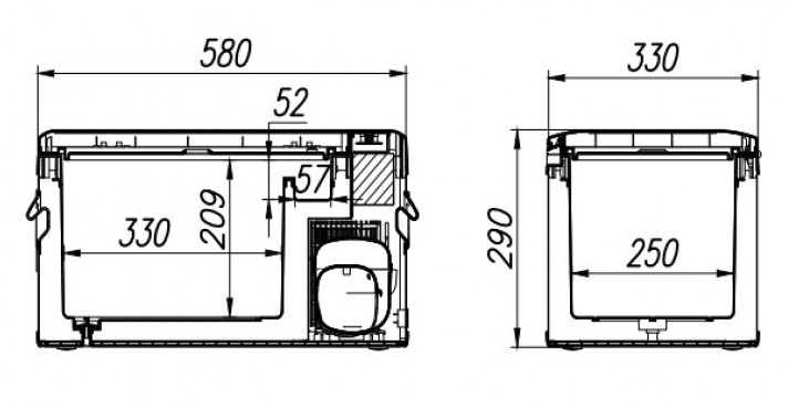- Внешние размеры (В*Ш*Г), мм: 290 х 580 х 330